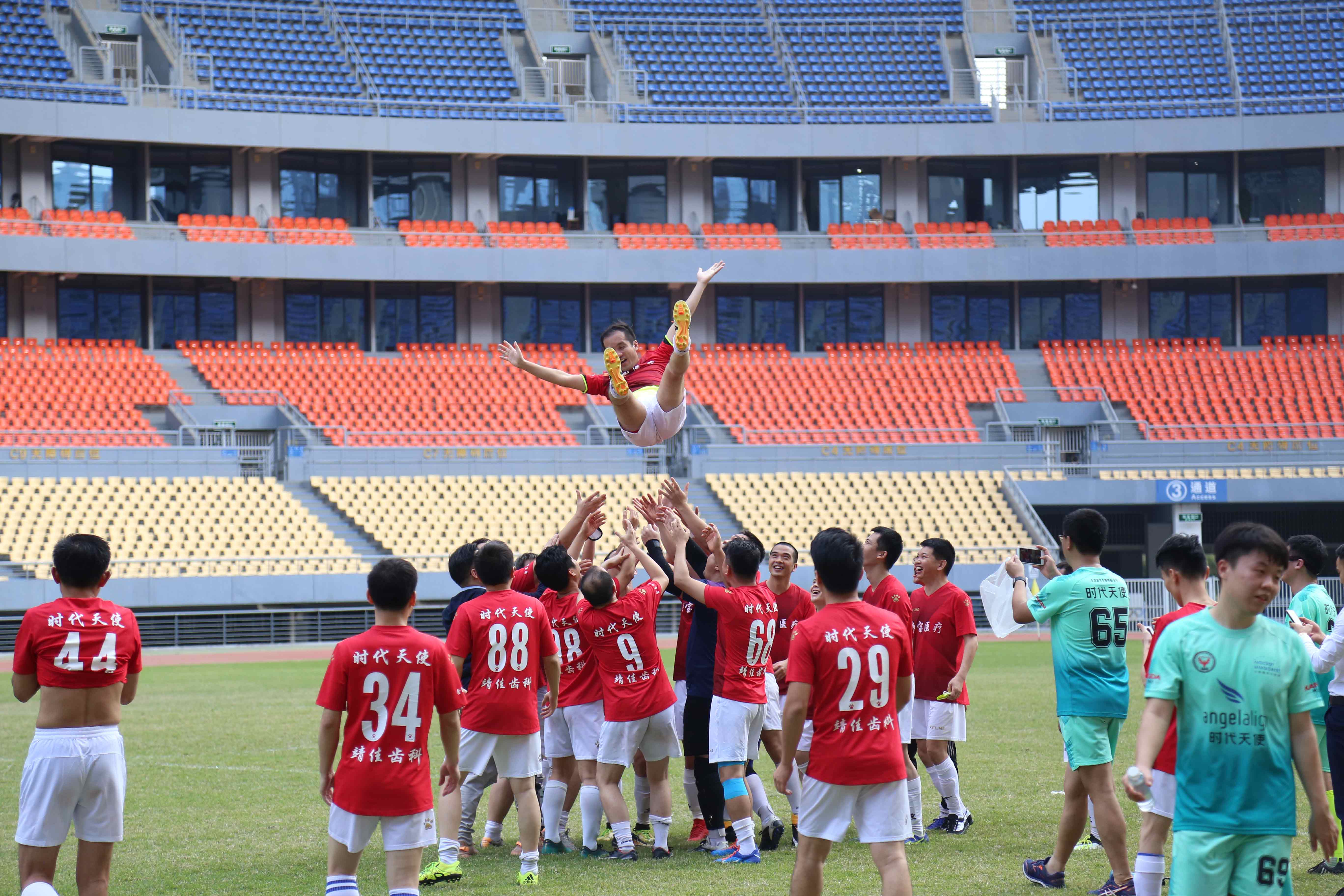 2019年12月14-16日第二届全国牙医足球联赛(广西赛区)在广西体育中心举行,现场气氛热烈,有来自广西,北京,沈阳,陕西的四个球赛角逐冠军。当他们脱下白大褂穿上足球衣,你们印象中那些严谨认真的牙医瞬间变成驰骋在绿茵场上的英雄。